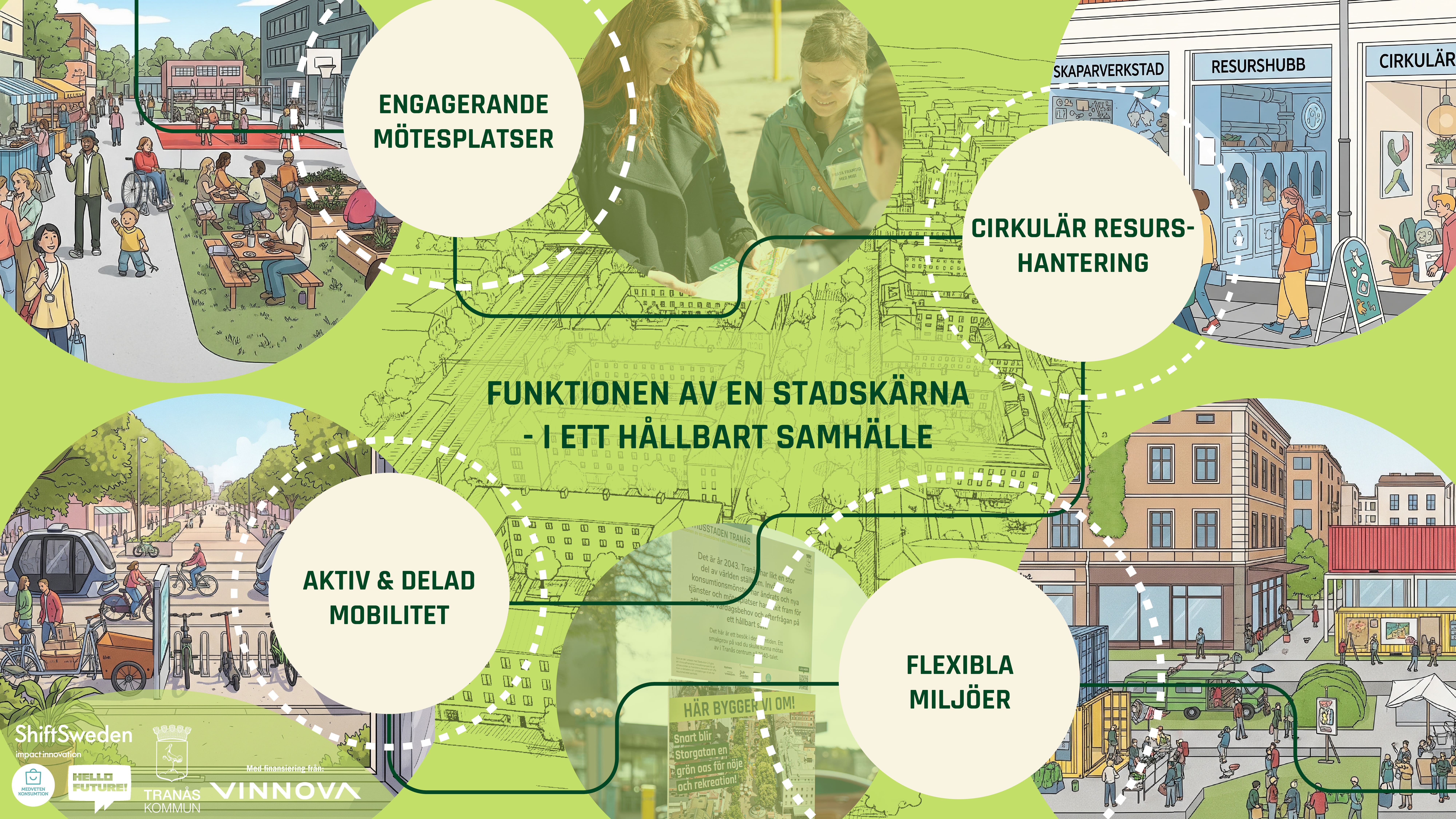 Projektet är en del av ShiftSweden och har finansierats av Vinnova. Genom framtidsscenarier, prototyper och dialoger med invånare och olika aktörer har flera möjliga framtider utforskats. En framtidsbild har tagits fram som visar hur småstäder, med Tranås som utgångspunkt, skulle kunna utvecklas för att fortsätta vara en attraktiv handelsplats och social mötesplats i en hållbar framtid.